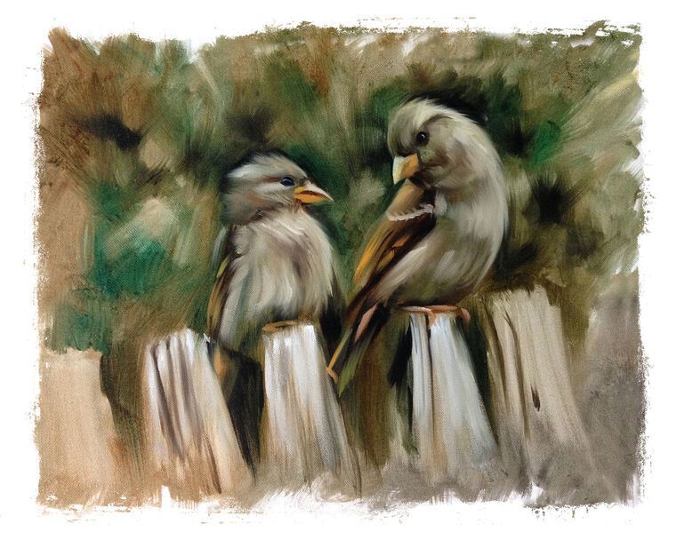 Купить и печать на заказ Картины на подрамнике Воробьи на заборе