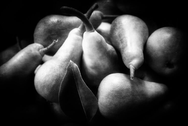 Купить и печать на заказ Картины на подрамнике Груши на черном фоне