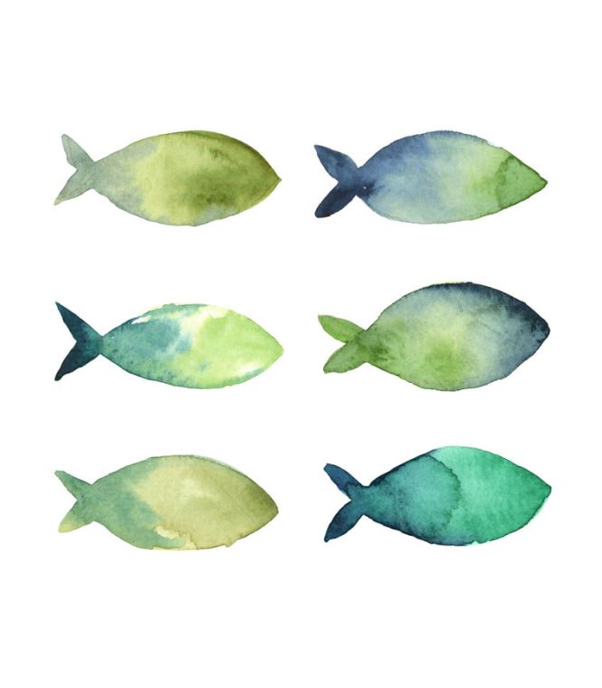 Купить и печать на заказ Картины на подрамнике Силуэты рыбок акварель