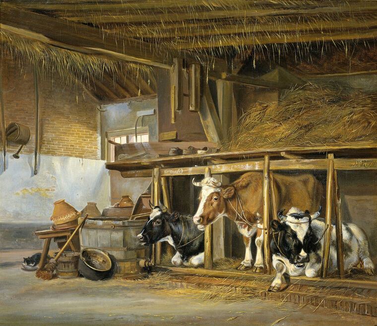 Купить и печать на заказ Картины на подрамнике Коровы в хлеву