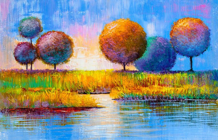 Купить и печать на заказ Картины на подрамнике Сказочный пейзаж с деревьями