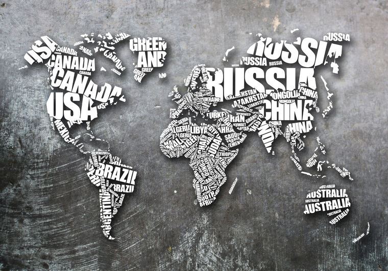 Купить и печать на заказ Картины на подрамнике Карта мира из названий стран
