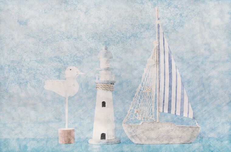 Купить и печать на заказ Картины на подрамнике Детский кораблик, маяк и чайка