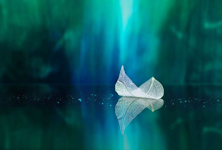 Купить и печать на заказ Картины, фото с паспарту Белый лист на зеркальной поверхности