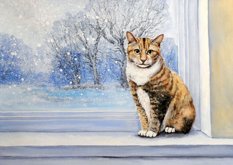 Купить и печать на заказ Картины, фото с паспарту Кот у окна