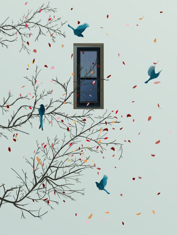 Купить и печать на заказ Картины, фото с паспарту Птицы за окном