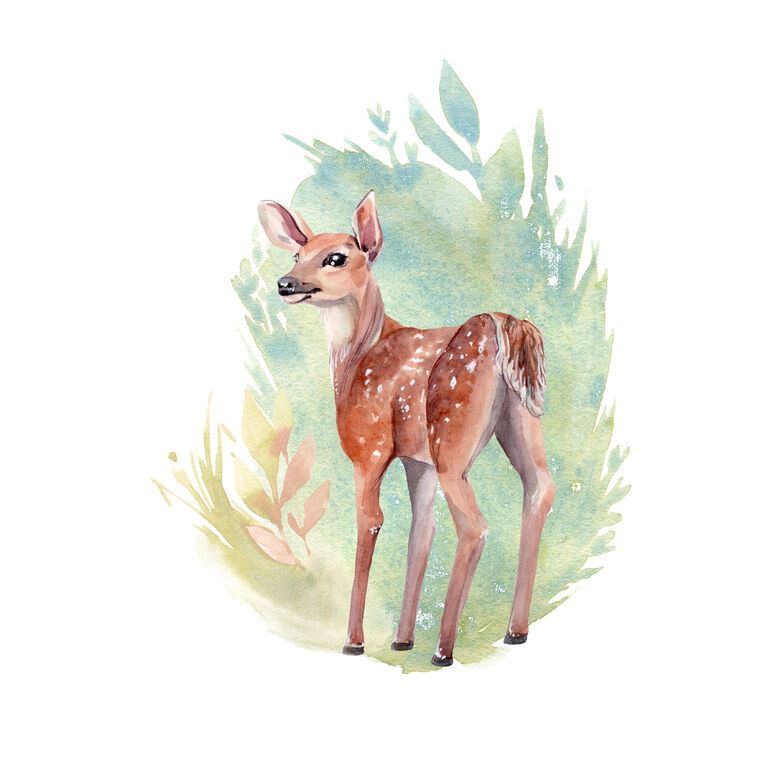 Купить и печать на заказ Картины, фото с паспарту Лань на акварельном фоне