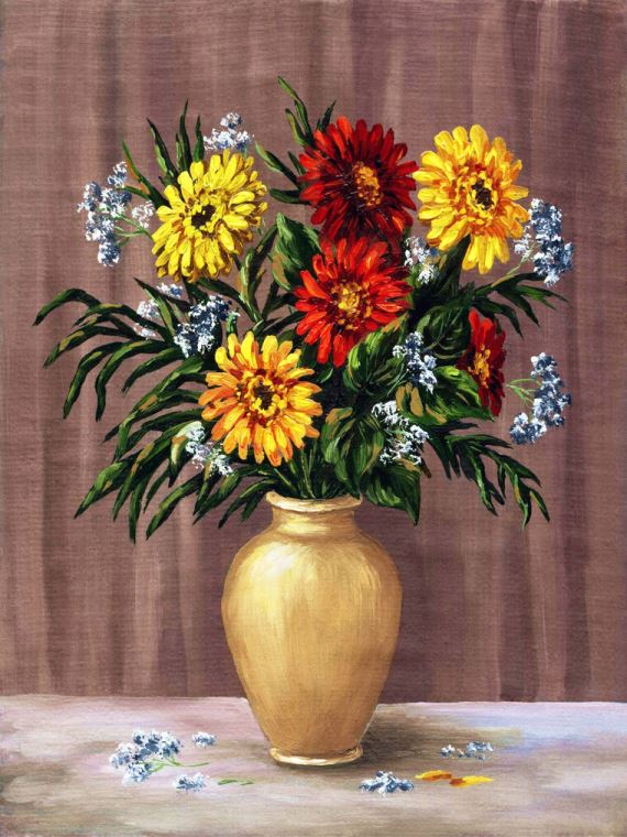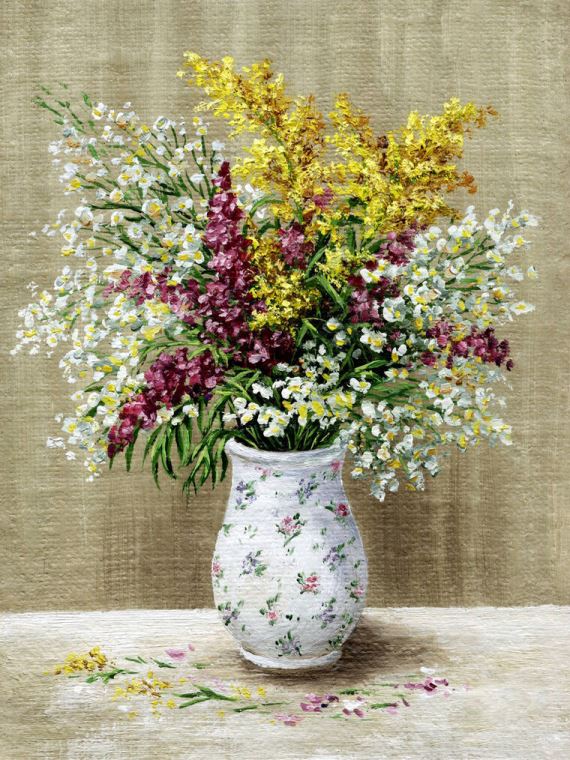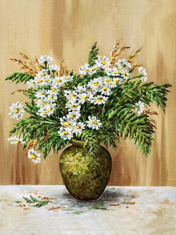 Купить и печать на заказ Картины, фото с паспарту Зеленый букет ромашек