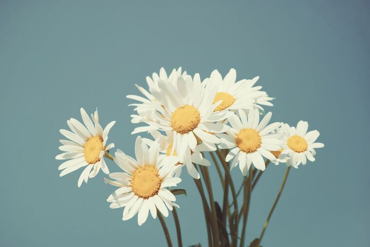 Купить и печать на заказ Картины, фото с паспарту Маргаритки на фоне голубого неба