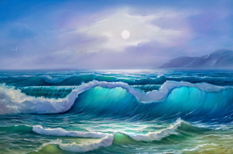Купить и печать на заказ Картины, фото с паспарту Бирюзовые морские волны
