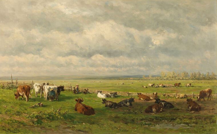 Купить и печать на заказ Картины, фото с паспарту Луговой пейзаж со скотом