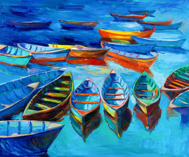 Купить и печать на заказ Картины, фото с паспарту Живописные лодки
