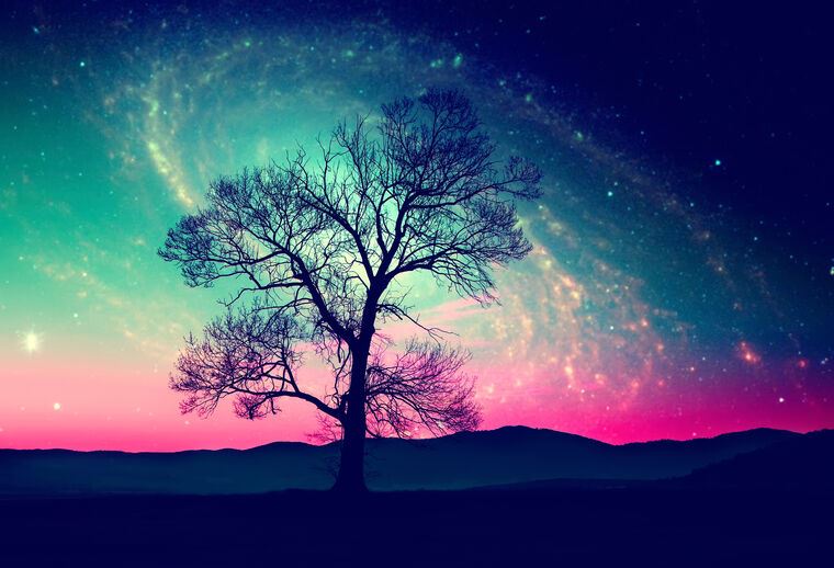 Купить и печать на заказ Картины, фото с паспарту Дерево на фоне звездного неба