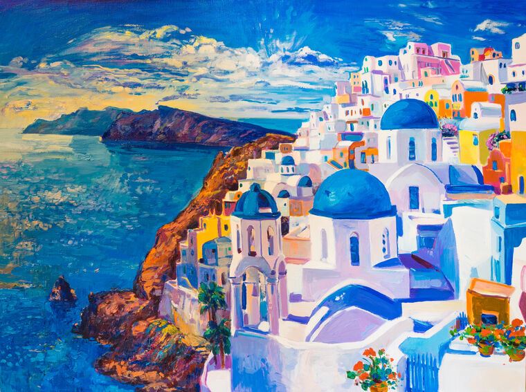 Купить и печать на заказ Картины, фото с паспарту Живописный греческий пейзаж