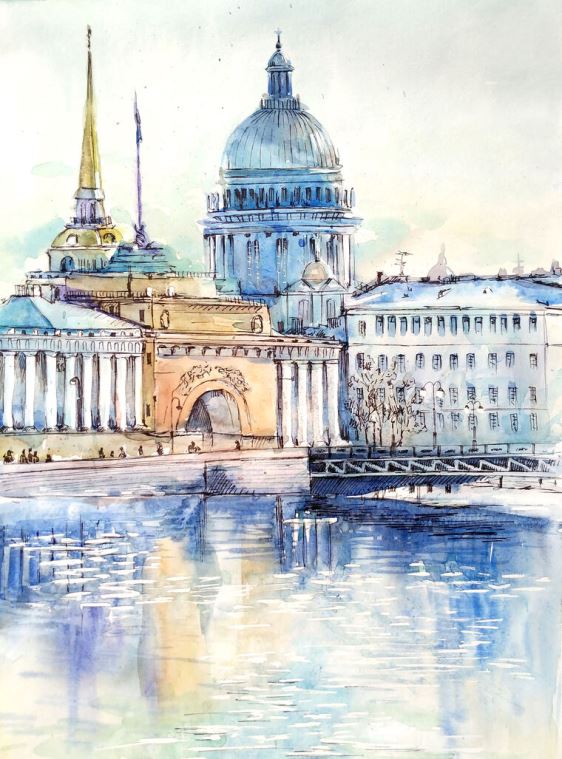 Купить и печать на заказ Картины, фото с паспарту Пейзаж города Санкт-Петербурга