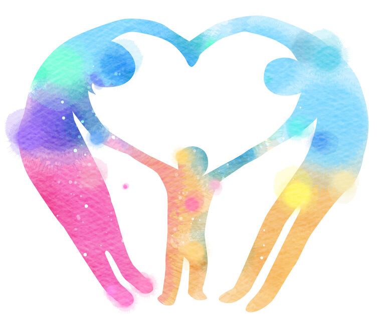 Купить и печать на заказ Картины, фото с паспарту Силуэты семьи в форме сердца