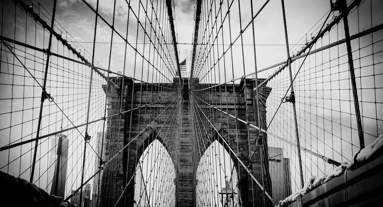 Купить и печать на заказ Картины в рамке, багете Бруклинский мост черно-белое фото