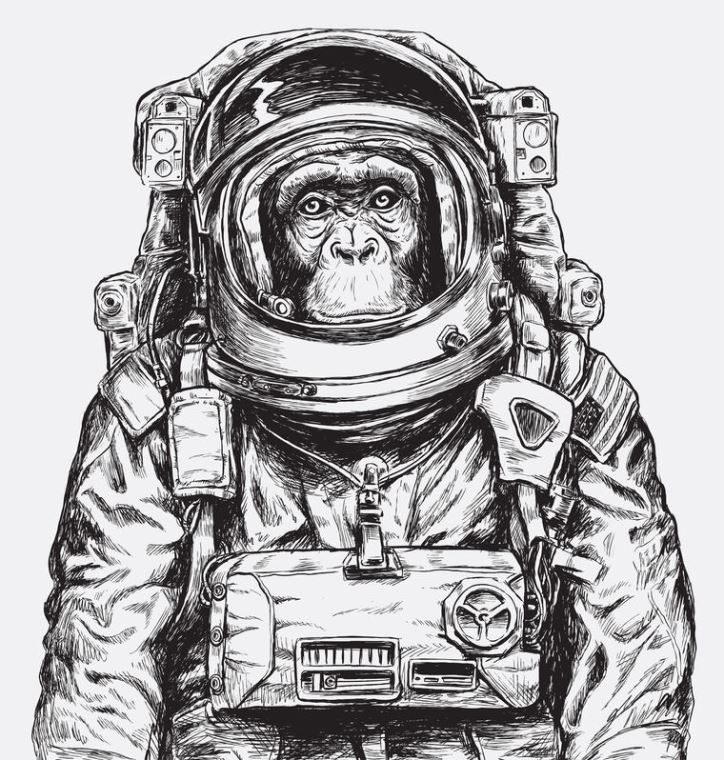 Купить и печать на заказ Картины в рамке, багете Шимпанзе-космонавт