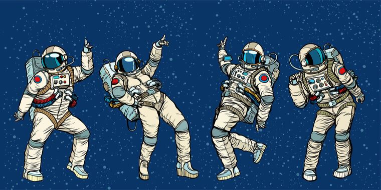 Купить и печать на заказ Картины в рамке, багете Танцующие космонавты