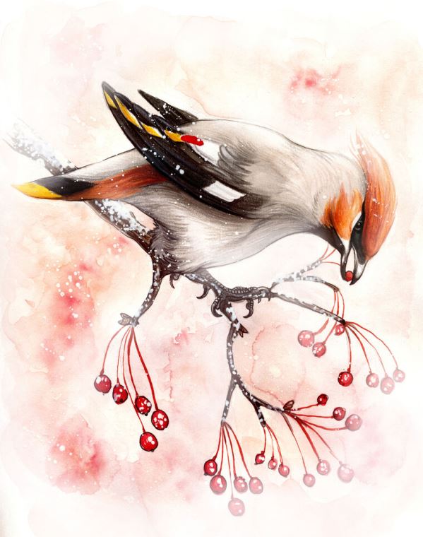Купить и печать на заказ Картины в рамке, багете Рисунок птицы с ягодами