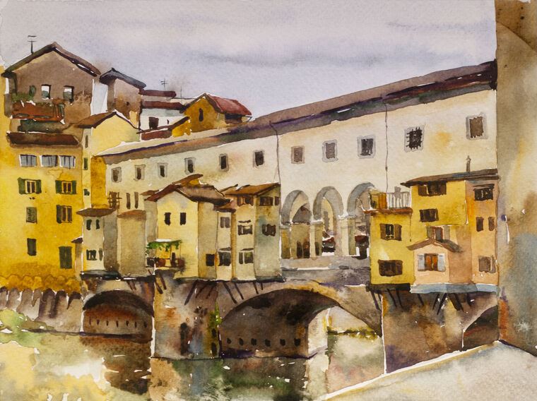 Купить и печать на заказ Картины в рамке, багете Дождливый день на мосту Понте-Веккьо