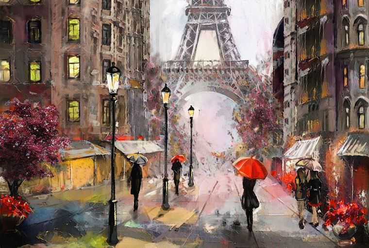 Купить и печать на заказ Картины на холсте Улица Парижа под дождем
