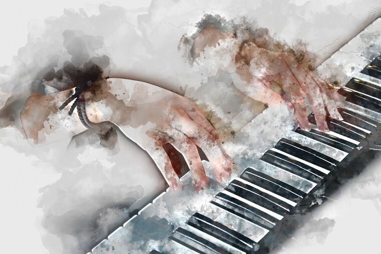 Купить и печать на заказ Картины на холсте Руки и рояль акварель