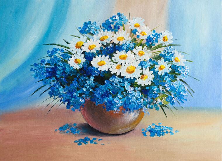 Купить и печать на заказ Картины на холсте Букет с ромашками