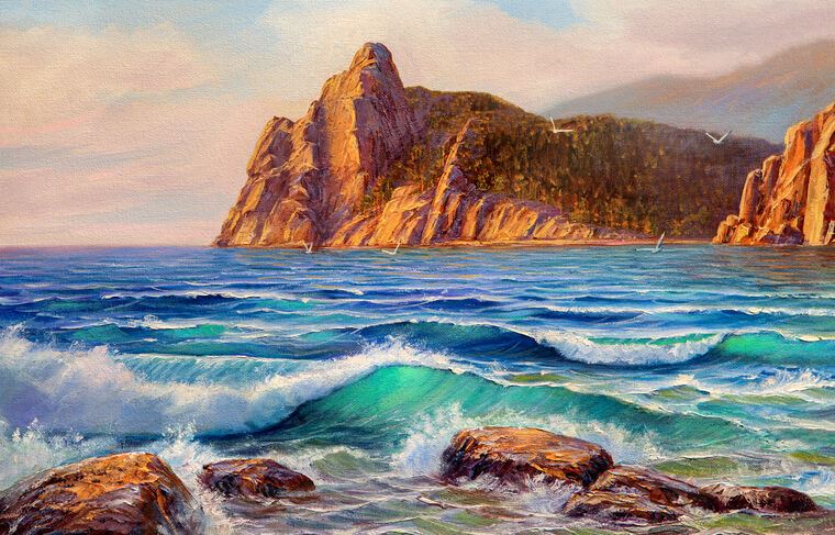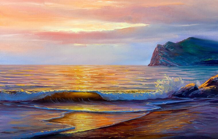 Купить и печать на заказ Картины на холсте Морской залив на закате