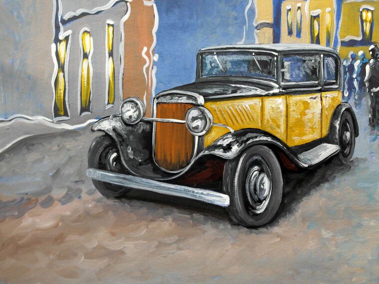 Купить и печать на заказ Картины на холсте Желтый ретро автомобиль