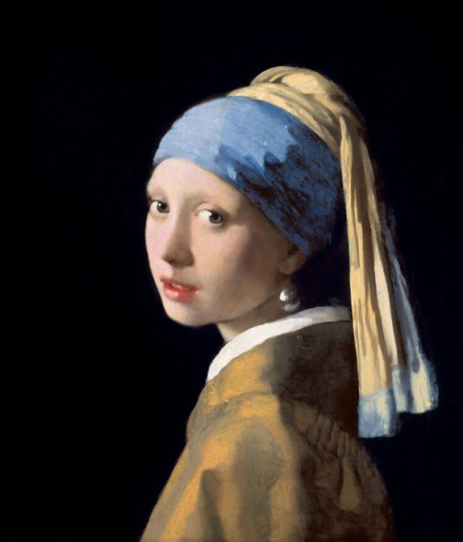 Jan Vermeer van Delft, бледный, взгляд, выразительный, голландская, голубой, губы, желтый, жемчужина, женственность, женщина, живопись, загадка, коричневый, красивый, краски, лицо, мазки, масло, оттенок, портрет, сережка, серьга, текстура, тюрбан, украшение, фигура, фон, холст, черный, школа, эстетика, юная, Ян Вермеер,
