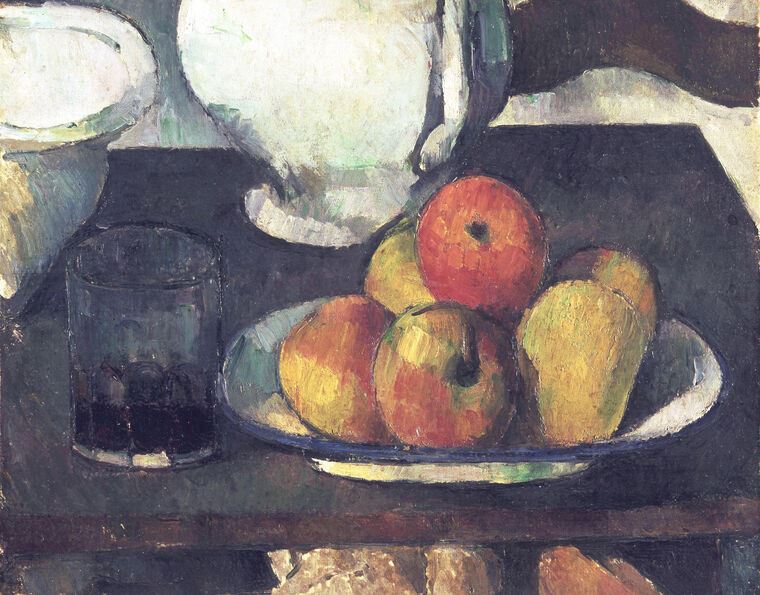 Купить и печать на заказ Репродукции картин Поль Сезанн Apples and a Glass of Wine