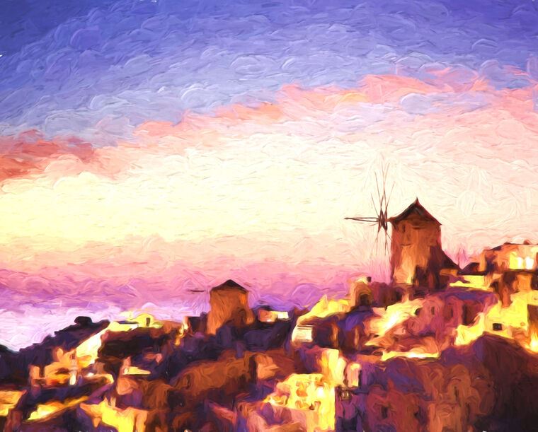 Купить и печать на заказ Репродукции картин Город с Мельницей