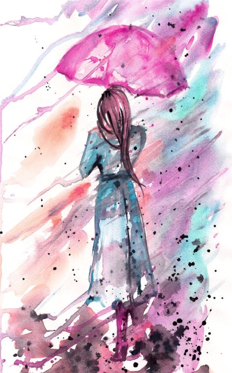 Купить и печать на заказ Репродукции картин Акварель девушка с зонтиком