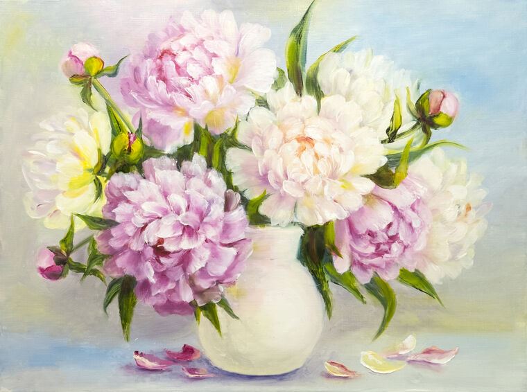 Купить и печать на заказ Репродукции картин Нежные пионы маслом