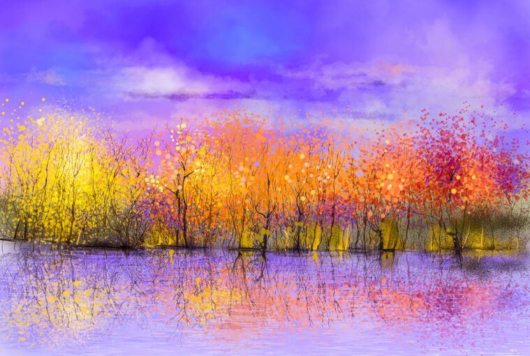 Купить и печать на заказ Репродукции картин Осенний лес фиолетовый фон
