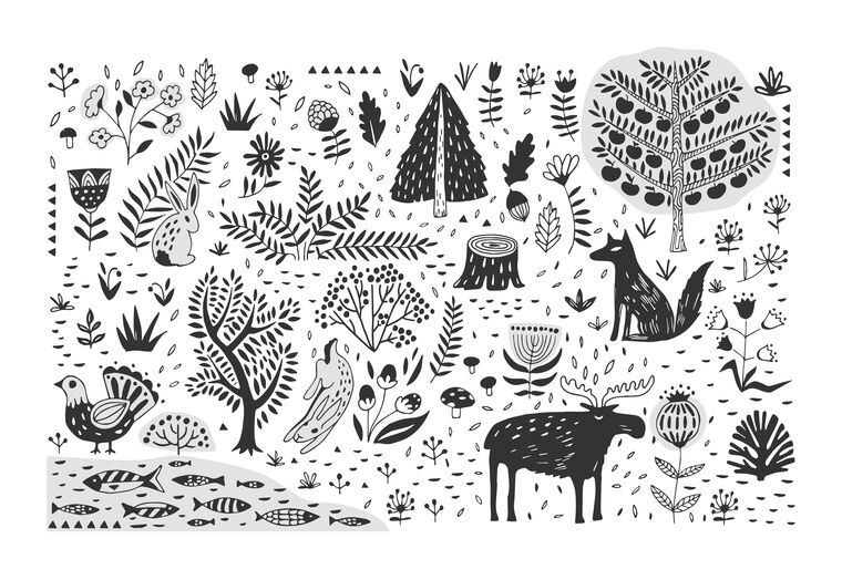 Купить и печать на заказ Репродукции картин Лесная жизнь графика