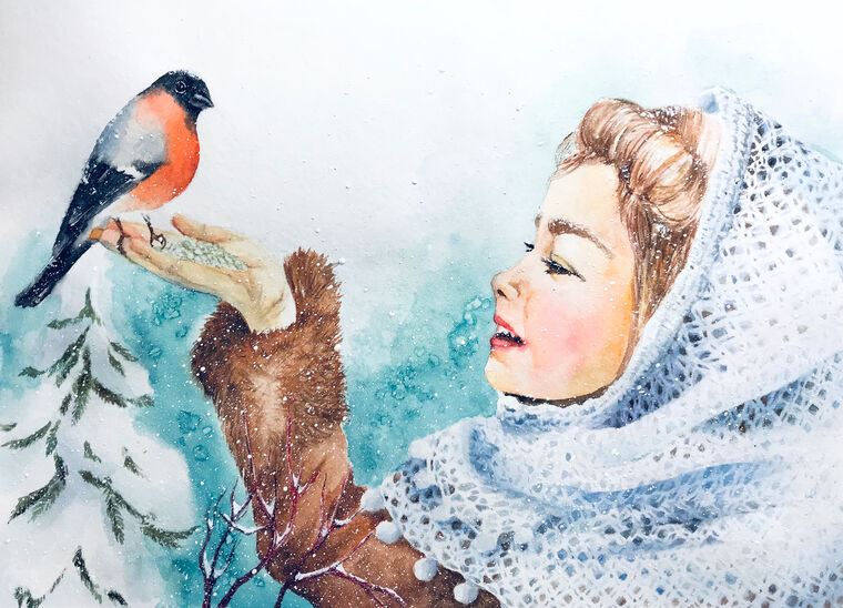 Купить и печать на заказ Репродукции картин Девочка и снегирь